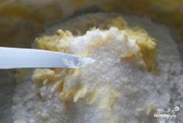 1 To prepare the dough, you need to freeze a little oil. In a separate bowl pour the sifted flour. Oil grate into flour. Add half the sugar, salt and baking soda. Rub the hands, the dough was in the form of crumbs. Check the readiness of this: squeeze the dough into a ball and press it. It should fall to crumbs. If the lump is not scattered, add a little flour. If the dough crumbles into the sand, add a little oil.