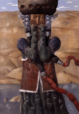 Man, educated academically Zorikto seeks and finds unusual for such content in more than a modern form. This is - your way with her, no one else seems to have a line pattern, texture, unusual color scheme, metaphorical images, behind which appear the features of the Buddhist view of life. Nomads, warriors, heroes, oriental women - favorite subjects Dorzhieva. Basically, the artist paints in oils, but also uses a mixed technique, adding gold leaf and acrylic paints.